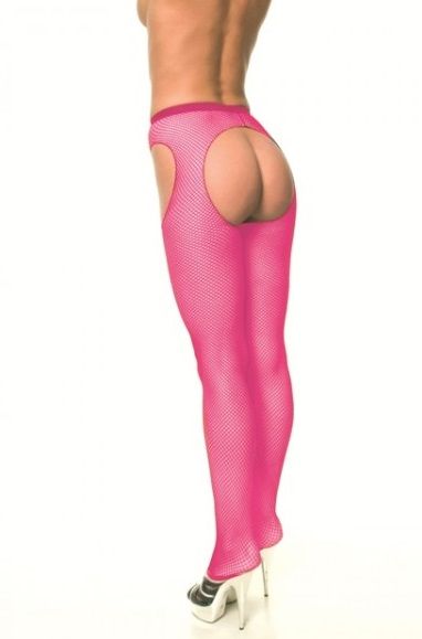 Женские эластичные колготки на тонкой резинке. Колготы полностью обнажают ягодицы и зону бикини, в мелкую сетку.