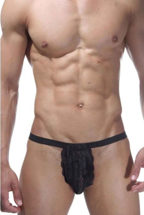 Трусы-стринги для мужчин на широкой резинке, с кружевом.