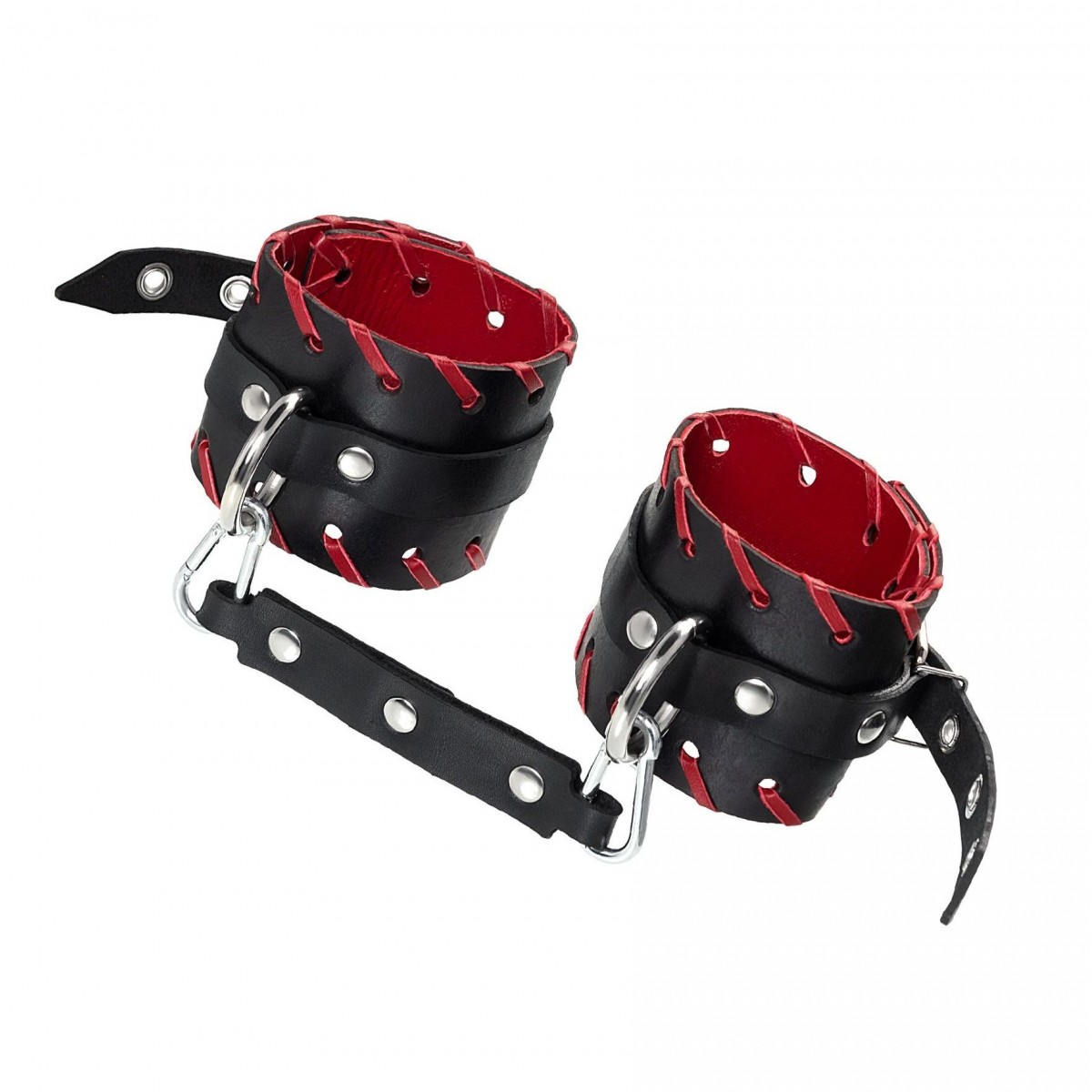 Готовы играть по-взрослому? Не бойтесь своих желаний! Основатели бренда уверены: лучший способ избавиться от искушения - поддаться ему! Добавьте пикантную деталь в ролевую игру и воплотите самую смелую сексуальную фантазию в реальность! Двухслойные кожаные оковы с окантовкой красного цвета, могут стать стильным аксессуаром на «свободных» руках, но могут послужить вашим целям и фантазиям по своему прямому назначению. Наличие двух карабинов и колец позволяет использовать изделие как раздельно – аксессуар-манжеты, так и как наручники для фиксации. К широким металлическим кольцам также можно присоединить и другие аксессуары при помощи карабинов. Благодаря универсальному размеру наручники могут использоваться и мужчинами, и женщинами. Размер легко регулируется с помощью металлических пряжек, органично вписывающихся в общий стиль. Длина манжет - 25 см, ширина манжет - 6,5 см. Длина сцепки - 20 см.