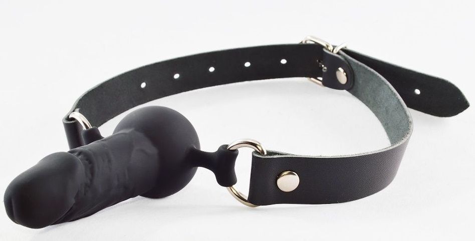 Силиконовый кляп в виде сферы и небольшого фаллоимитатора прикреплен к ремешкам из натуральной кожи. Регулируется кляп при помощи металлической пряжки. Металлическая фурнитура имеет никелевое покрытие. Ширина ремешков - 2 см. Длина кляпа - 9,7 см. Диаметр шара - 3,8 см.